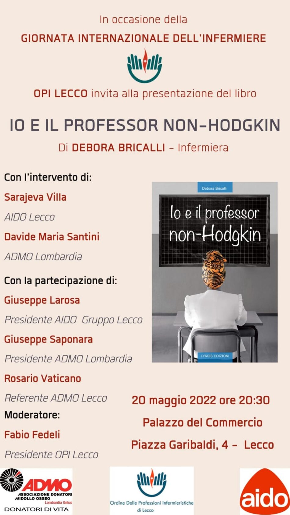 Il 12 maggio ricorre la Giornata internazionale degli Infermieri e come di consueto si susseguiranno una serie di iniziative rivolte alla cittadinanza e ai professionisti del territorio provinciale, organizzate dall’OPI (Ordine delle Professioni Infermieristiche) di Lecco. Fra queste il 20 maggio alle ore 20,30 a Lecco presso il Palazzo del Commercio, in Piazza Garibaldi 4 si terrà un incontro organizzato in sinergia con AIDO e ADMO. “Abbiamo pensato di celebrare la giornata degli infermieri rimanendo dove siamo tutti i giorni, ossia al fianco dei cittadini, promuovendo la salute” - spieg ail presidente OPI, Fabio Fedeli- “In queste settimane saremo impegnati nelle scuole con incontri di orientamento ed educazione sanitaria, sui canali social e al fianco di associazioni che si occupano di tematiche fondamentali per il bene delle comunità, facendo maggiormente conoscere il ruolo che gli infermieri hanno nella nostra società. Il 28 maggio invece si terrà un convegno per i nostri iscritti che vedrà la partecipazione di infermieri ricercatori e di colleghi neolaureati che illustreranno le più recenti evidenze scientifiche nel campo dell’assistenza infermieristica”.La serata prevede la presentazione del libro “Io e il Professor non Hodgkin” con la presenza della scrittrice Debora Bricalli. Debora è una giovane infermiera, abituata a stare in mezzoai malati di cancro, ma meno abituata ad essere lei la persona malata. Giovane, troppo giovane per pensare di essere preda di malattie così aggressive nel momento più esaltante della sua vita, la gravidanza. Al sesto mese si ritrova invece affetta da linfoma Non Hodgkin e la sua vita è capovolta. Tra momenti di inebriante gioia come la nascita della figlia, il matrimonio e i rientri a casa e momenti di sconforto, Debora riesce a ritagliarsi del tempo tutto per sé descrivendo sensazioni ed emozioni vissute nel suo percorso. I pensieri accumulati diventano un vero e proprio libro con l’intento di donare speranza a chi soffre e un contributo economico a chi si occupa di combattere queste malattie. Inoltre, l’evento verrà impreziosito da ulteriori testimonianze. Durante la serata interverranno Sarajeva Villa e Davide Maria Santini,raccontando il loro personale vissuto e promuovendo così la cultura del dono. Saranno presenti Giuseppe Larosa, referente AIDO Lecco e Rosario Vaticano,referente ADMO Lecco. Prevista anche la presenza del presidente regionale ADMO Lombardia, Giuseppe Saponara: "Per molte malattie onco-ematologiche la curanon può essere comprata, si tratta di una donazione di cellule staminaliematopoietiche che solo il gemello genetico del paziente può offrirgli.#SEIPRORPIOTU QUEL GEMELLO GENETICO? Lo puoi scoprire solo iscrivendoti al registro dei potenziali donatori, se non sei iscritto e il tuo gemello genetico ha bisogno di TE, non può trovarti in nessun modo! Sono tanti i pazienti in attesa del dono, per questo Admo Lombardia da 31 anni sensibilizza alla donazione di cellule staminali ematopoietiche presenti nel midollo osseo (che non è il midollo spinale!). Partecipa all'incontro per scoprire quant'èfacile poter regalare una speranza di vita."